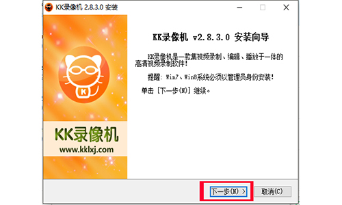 你的操作系统是WIN7,安装KK时需要以管理员权限安装。你安装KK时不是用管理员权限安装的,所以显示错误。