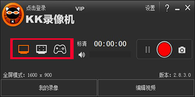 KK录像机针对不同的录制对象分为3种录制模式,准备录制前必须选择合适的录制模式。