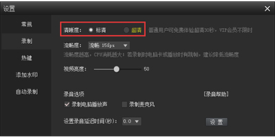 录制DirectX、OpenGL等3D类游戏(选择该模式后,必须进入游戏,等待左上角出现黄色帧率才可以录制)