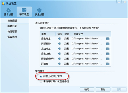 在系统设置=》聊天设置=》消息提醒中将“好友上线浮出窗口”选中即可,如图: