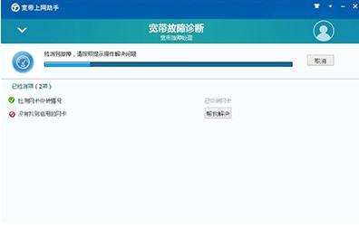 运行客户端软件,当用户在平常拨号上网时遇到故障,选择【故障诊断】,可以通过“一键修复”初步诊断或选择具体原因定位方式,来帮助您解决网络问题。