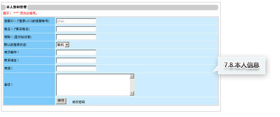 客服可通过此页面修改个人信息。