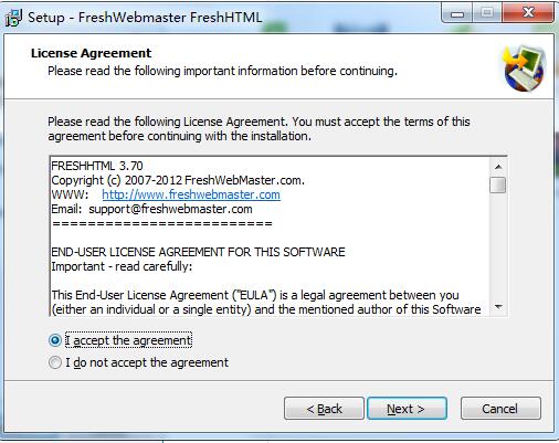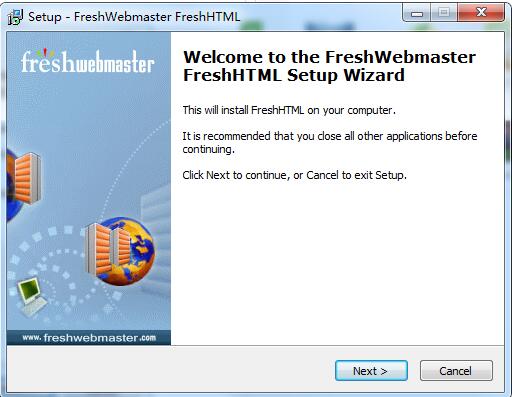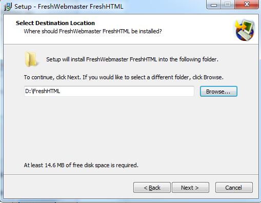 (x86)FreshWebmasterFreshHTML”,建议安装在D盘,点击Next;
