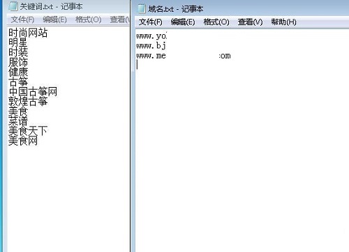 3、程序根目录下有个关键词.txt和域名.txt。在里面相对输入你想要查询的关键词和域名。如图:
