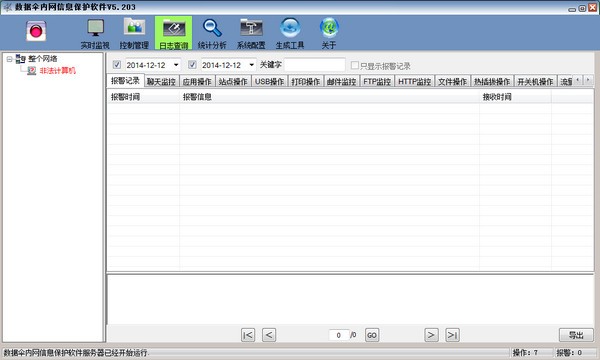 数据伞网络监控软件正式版是一款十分专业且对内网局域网的监测软件,数据伞网络监控软件正式版能监视局域网的一举一动,任何对数据文件、端口、网络设备、互联网的操作都将记录下来,新增加网址白名单功能,以及上班时间控制、下班时间不控制功能,有效的保护内网的信息安全。