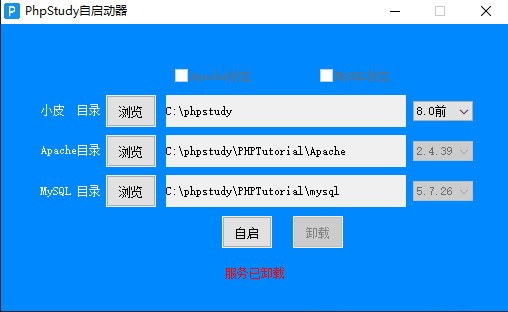 Phpstudy自启动器官方版是一款使用起来十分简单便捷非常实用的Phpstudy自启动工具,Phpstudy自启动器官方版会自动会寻找C、D、E盘符下,没有改动过的原安装目录,支持phpstudy、phpstudy_pro。