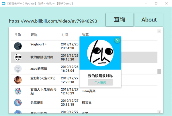 小卡片会出现用户的头像,昵称,以及你点击个人空间,程序会用默认浏览器打开该用户的空间。