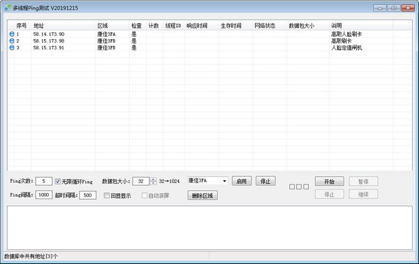 1:增加区域选择,支持批量启动区域IP和批量停止区域IP(停止后开启ping将不检测)