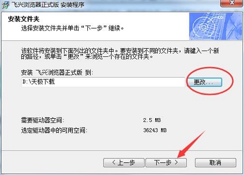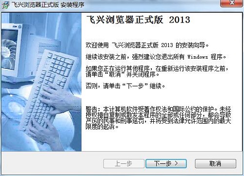 1、下载飞兴浏览器官方版软件包,解压缩点击exe程序开始安装,点击【下一步】