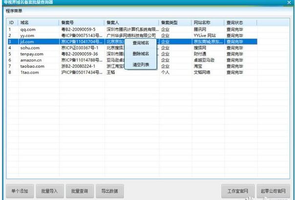 零视界域名备案批量查询器官方版是一款小巧实用的域名备案查询工具,软件界面简洁大方,功能强劲实用,操作简单。零视界域名备案批量查询器官方版可以帮助用户查询域名备案情况,支持批量对域名进行查询,非常的方便便捷。