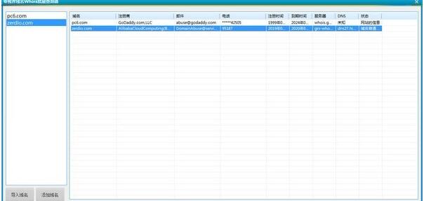 可以查询注册商,注册时间,过期时间,域名状态等信息