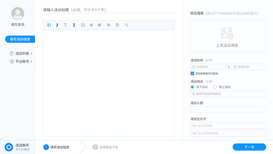 清爽简洁的活动编辑,一目了然的活动信息设置项,创建活动更加轻松。