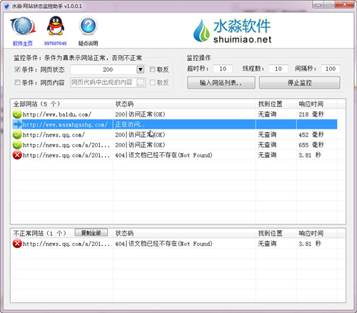 线程数:可以设置同时监控访问的线程数,假如有1000个网站,线程数为10,则需要轮替100批次来完成1000个网站的访问,每批次10个网站访问。