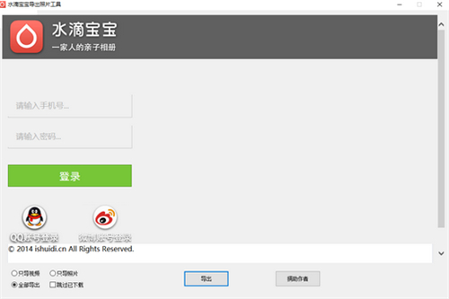 ??水滴宝宝导出照片工具官方版是专为水滴宝宝云相册制作的一款辅助工具,照片按宝宝年龄自动整理,记录宝宝成长的每一瞬间,不限容量,永久免费。该工具可以帮助用户一键导出照片,并且还可以帮助用户导出视频。界面友好直观,使用简单方便。是一款非常不错的软件。