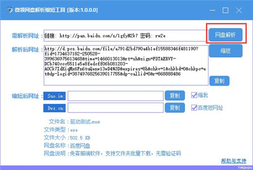 2、点击【网盘解析】按钮即可解析出该资源的真实下载地址