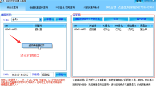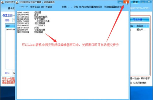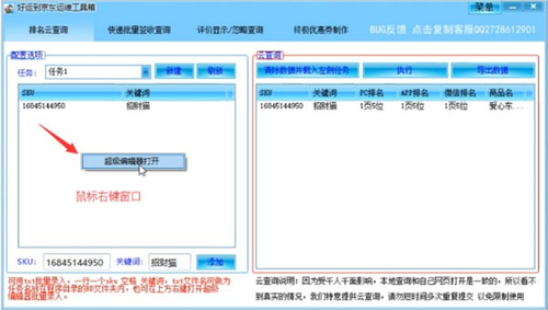 1、可用txt批里录入,_一行一个sku空格关键词,txt文件名可做为任爱名放在程序目录的即文件夹丙,也可上方右罐打开超级编辑器批里录入。