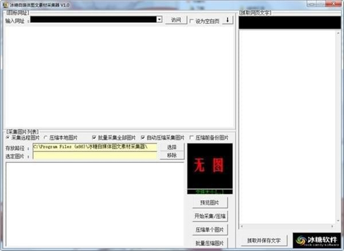1、运行软件,在目标网址处输入你需要采集的网站地址,可以是一个图片站或是一篇文章、小说,或者是图文版网页,然后点击“访问”按钮等到软件彻底打开该网页后,采集图片列表会自动列出该页面所包含的图片链接。
