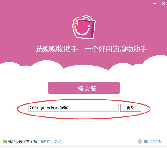 2、可以选择一键安装,如需更改安装地址,可以通过自定义选项更改