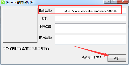echo歌曲解析是款功能很强大的一款操作软件。echo歌曲解析使用起来很方便只要把你想要听的歌曲链接放进去就可直接下载播放。