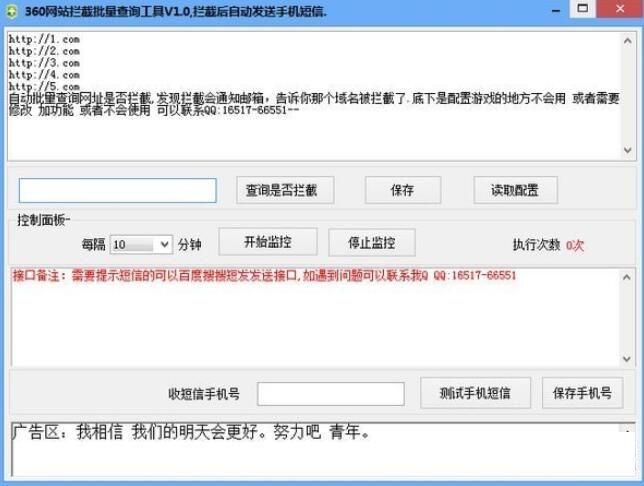 360网站拦截批量查询工具是款操作很简单,使用也很简单软件。360网站拦截批量查询工具支持域名批量监控,可设置检测间隔时间。功能很全面的一款软件。