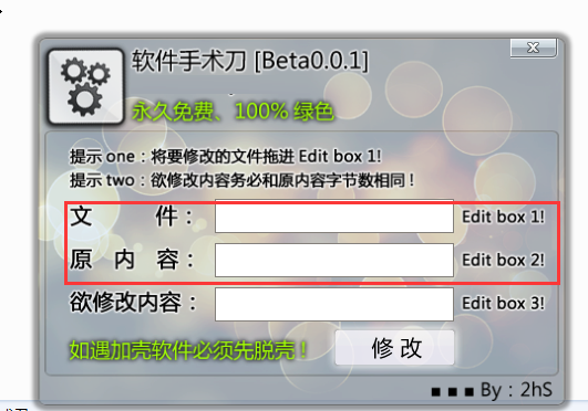 BOX12即可,注意与与原内容字节数保持一致。软件手术刀官方版还有快速查找,快速修改,快速保存,支持多编码等特点。