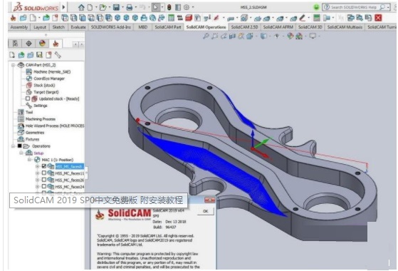 2、将中文补丁文件夹Solidcam直接复制到solidCAM2019的根目录下替换路径;