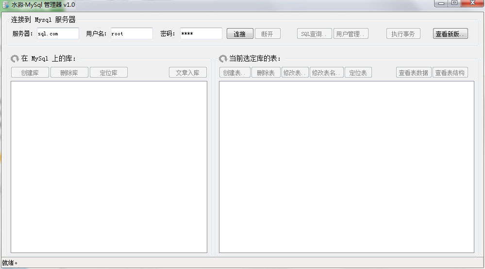 水淼MySql管理器最新版软件原始的出发点,是能够将文本文件导入到MySql数据库(文章入库),就像先前发布的水淼·Access导入导出器。免费使用的轻量级 MySql