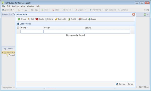 2)点击Create,若已存在,勾选后点击右下角Connect即可;否则:可以创建新的数据库连接,输入Serevr,即数据库地址和端口,以及认证信息:数据库名称,登录用户名,密码;输入完成后,点击Save&Connect测试是否可以连接成功;