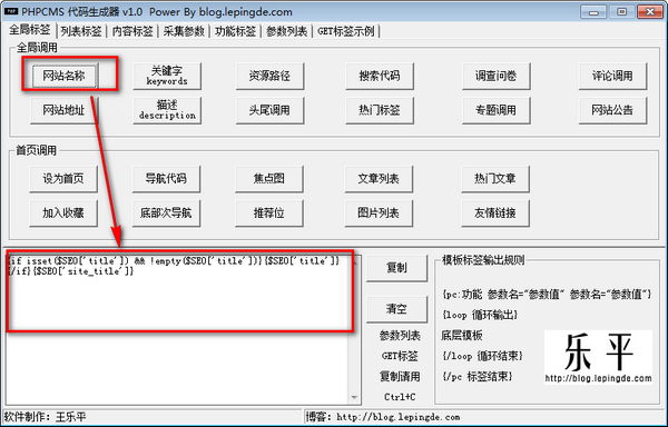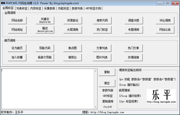 PHPCMS代码生成器正式版是用于对PHPCMS模板进行编辑制作的高效代码生成器,大部分的操作代码在此软件内都可实现