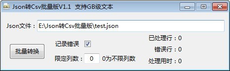 Json转Csv批量版最新版支持以下规范json格式(每行一条),json成员类型如为数组则转换为文本;不支持对象成员