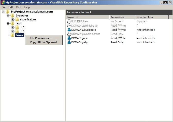 VisualSVN Repository Configurator(VisualSVN库配置器)官方版是一个独立的应用程序,不需要安装和执行管理权限。此外,库配置可以自动部署通过活动目录的组策略。