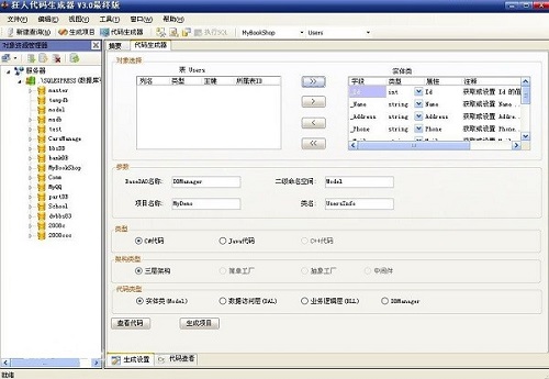 狂人代码生成器正式版是款界面清晰、功能性的的代码生成工具,狂人代码生成器正式版具有自动生成对数据库的CRUD相关方法,可以从数据库上加载项目数据,同时提供一个独立的项目生成界面,也支持对SQL数据库查询分析等等功能,帮助用户快速且更好的生成代码。