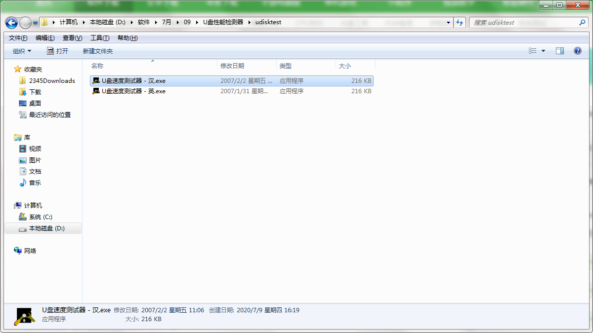 2.解压U盘性能检测器软件,运行“EXE.文件”