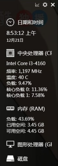Diagnostics是不会被这类软件所遮住的,所以你时时刻刻都可以看到硬件信息,只需要瞟一眼即可。