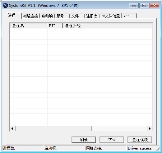 一、下载打开SystemKit官方版软件,点击刷新,即可获取当前PC的系统和进程信息。