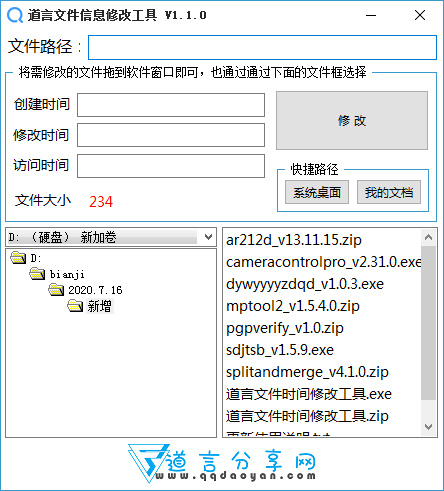 道言文件信息修改工具官方版支持对文件的基本信息进行修改。