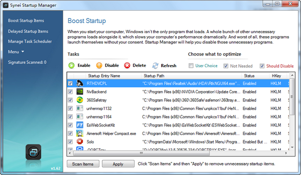 Synei Startup Manager官方版是一款使用起来非常安全可靠的开机启动箱管理工具软件,Synei Startup