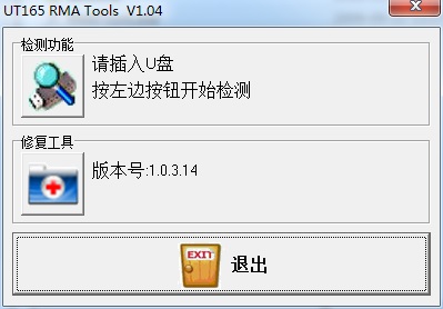 如果要对闪存盘进行重新分区格式化等闪存盘操作,请点击“管理工具”,运行闪存盘应用工具程序(Format.exe)。闪存盘工具程序(Format.exe)可以让您在闪存盘上制作闪存盘分区、闪存盘格式化、设定保密数据区、以及制作MSDOS启动盘。假如您设定了保密数据区,UT165 RMA Tools正式版程序会在您的“公共区”中安装“保密区登录程序”