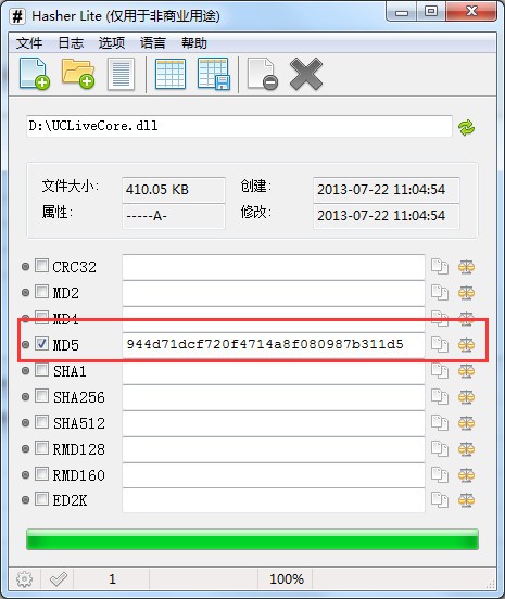 加载文件后,就可以看到该文件的MD5值