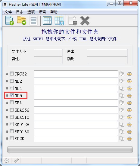 打开软件,勾选想要校验的哈希值,如果您只想校验MD5值的话,只勾选MD5,即可