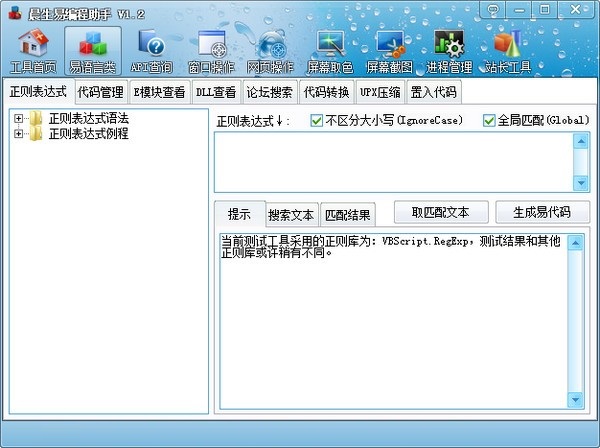 易语言类:正则表达式、代码管理、E模块查看、DLL查看、论坛搜索、代码转换、UPX压缩、置入代码