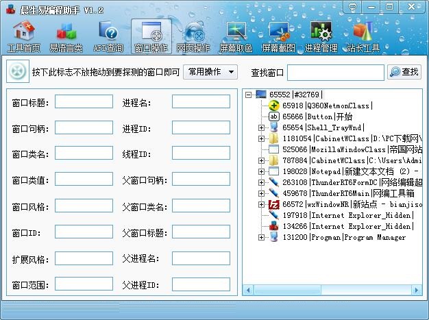 窗口操作:清晰的分析窗口中各种控件的信息!如窗口标题,窗口句柄,窗口类名,窗口类值,窗口风格,窗口ID,扩展风格,窗口范围,进程名,进程ID,线程ID,父窗口句柄,父窗口类名,父窗口标题,父进程名,父进程ID