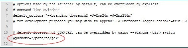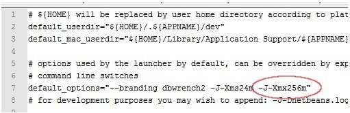 在编辑器中打开dbwrench.conf文件。请参见下面的屏幕截图。