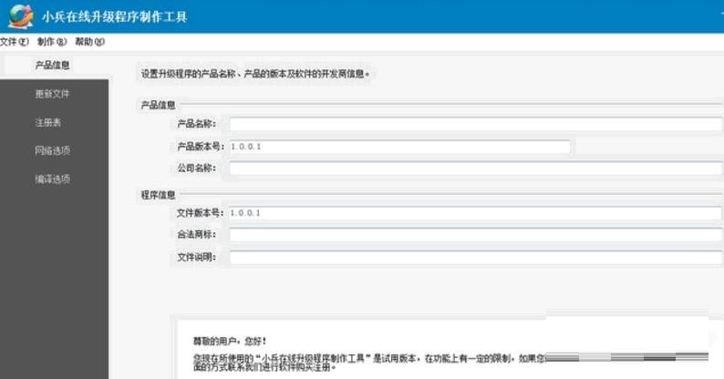 产品信息是用来设置在线升级客户端应用的显示信息,上图中所有的设置项设置之后显示在生成的在线升级客户端应用的EXE属性里,注意此处设置只有在WIN7以上的系统环境下设置修改有效。WIN7以下的系统因为格式的问题设置是无效的。