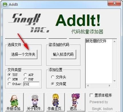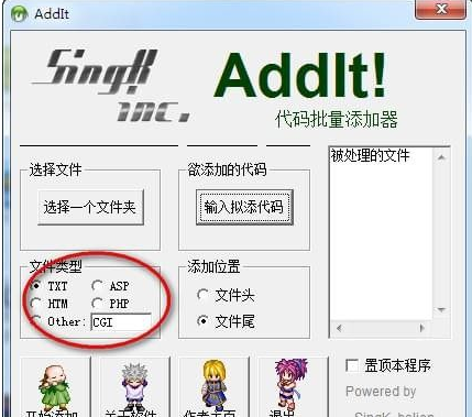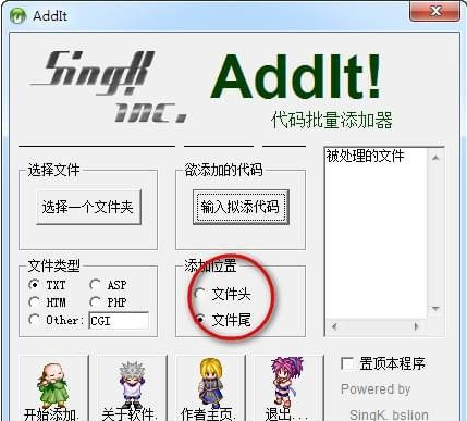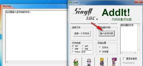 AddIt代码批量添加器官方版是一款安全稳定,而且快捷方便的代码批量添加软件。该软件功能强大,界面精美,上手容易,新手也可以轻松操作。它可将一段代码快速的添加到多个文件中,您要添加的代码可以是单纯的文本,也可以是HTML、ASP、PHP、Perl程序等。无需安装即可使用,需要的快来下载使用吧!
