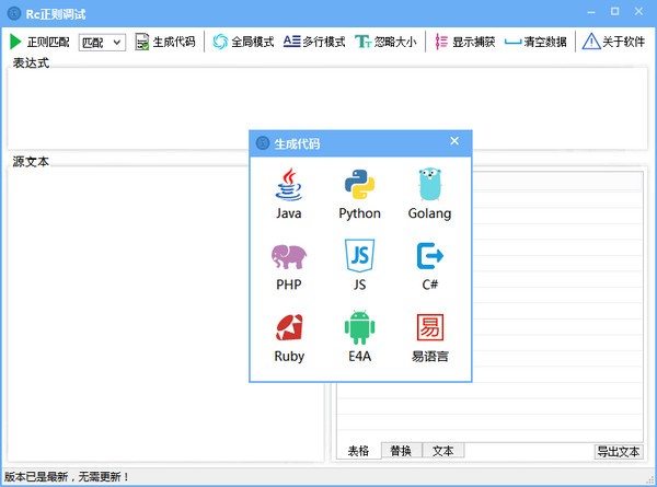 Rc正则调试助手最新版是一款简单实用的编程软件,Rc正则调试助手最新版的主要目的在于,让文本清晰格式化,支持正则匹配、生成代码、全局模式、多行模式、忽略大小、显示捕获、清空数据等功能!