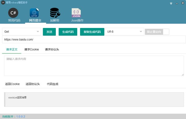2. 网页提交是配合精易c#框架快速生成c#http请求的功能(支持 get post put delete options head trace).