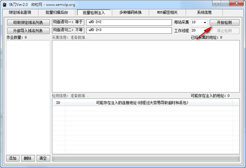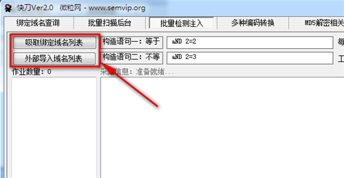 3、批量扫描后台和检测注入都需要吸取绑定域名列表,也可以从外部导入文本文件