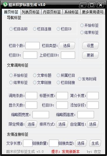 酷米织梦标签生成正式版是一款使用相当简单、功能极为强大的织梦模版制作软件。酷米织梦标签生成正式版软件小巧,使用方便,简单。可以自动复制标签代码,无需手动,加大工作效率软件能够根据你的选择而生成各种各样的标题标签、内容标签、开始标签等等的织梦的标签代码。