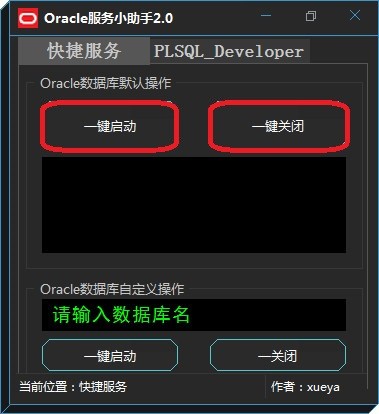 1、可以点击一键启动,一键关闭对Oracle数据库进行操作